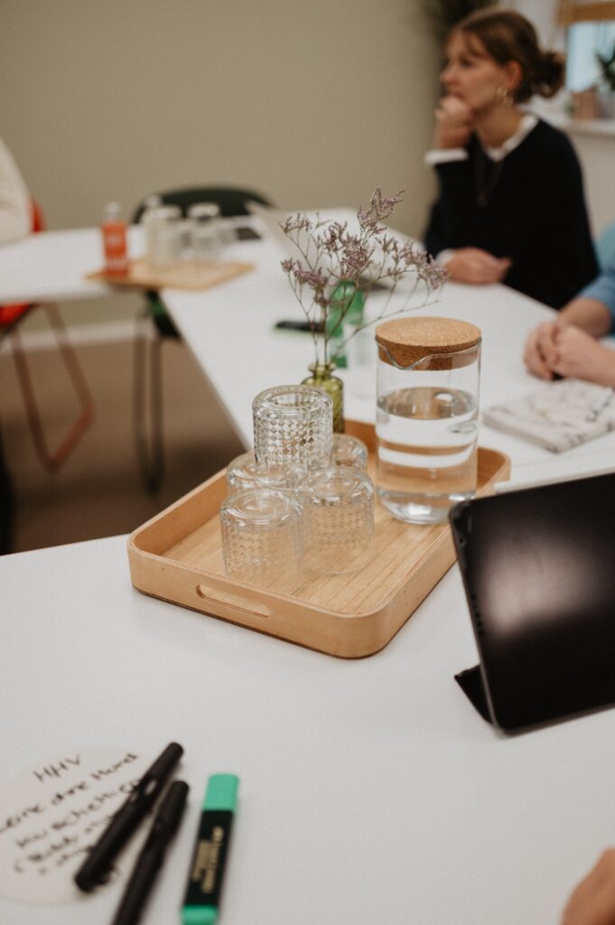 Diskret, stilvoll und mitten im Geschehen: Unser Coachingraum bietet helle Privatsphäre und ist ideal für Einzelsettings oder Gespräche zu zweit. Wenn du auf der Suche nach kreativen Meetingräumen in Köln bist, die nicht wie 08/15 wirken, wirst du ihn lieben.
