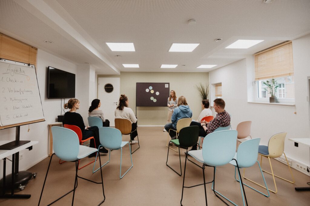Unsere Meetingräume in Köln verbinden durchdachtes Design mit einer entspannten, produktiven Atmosphäre. Ganz gleich, ob du ein kreatives Brainstorming, eine Teambesprechung oder ein Coaching planst – im COWOKI findest du genau den passenden Raum.